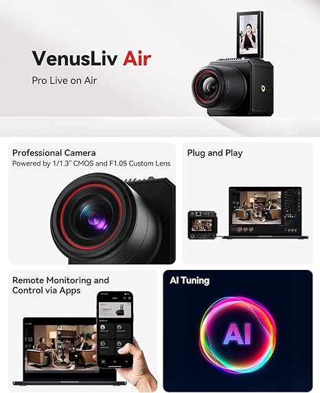 Professional Streaming Made Simple. The Hollyland VenusLiv Air is an all-in-one 4K streaming camera featuring a 1/1.3″ CMOS sensor, a fast $f/1.05$ lens, and built-in AI tuning. Perfectly compact for Lagos creators, it delivers cinematic quality with “plug-and-play” ease