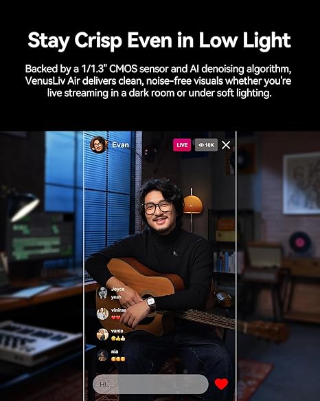 Take your content beyond the limits of a smartphone. The Hollyland VenusLiv Air utilizes a massive 1/1.3-inch CMOS sensor and a custom 50MP resolution to deliver stunning 4K30 visuals. Whether you are hosting a live commerce session on Instagram or a deep-dive podcast, the