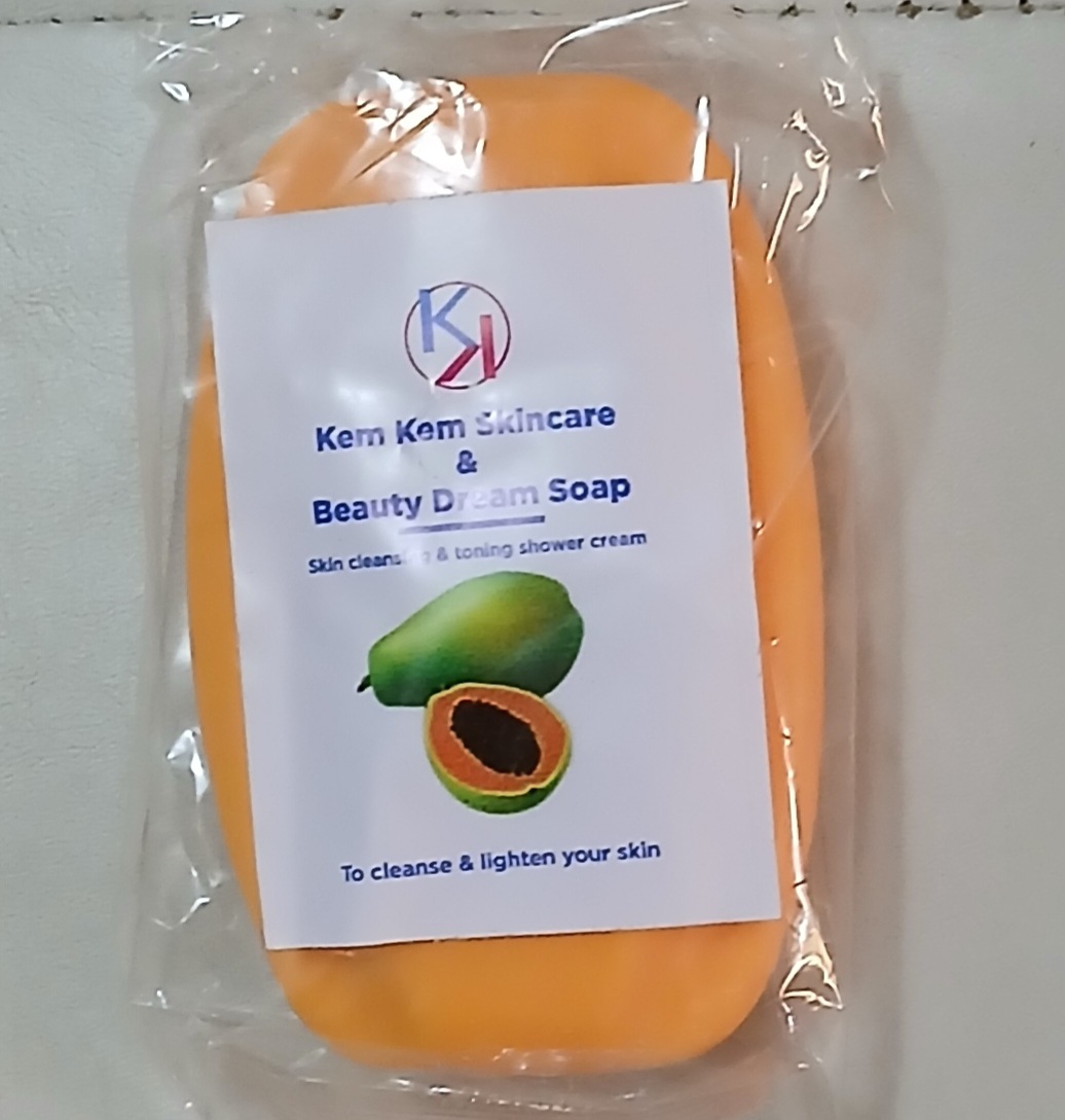 Kem Kem Vitamin C soap is rich in papaya and orange extract and natural on the skin.